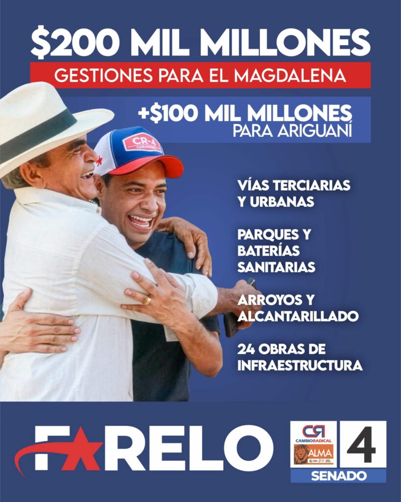 Tras este ejercicio, y revisando la información disponible, resulta evidente que el caso del senador Carlos Mario Farelo Daza es uno de los más sólidos cuando se habla de gestión territorial traducida en inversiones concretas para el departamento del Magdalena.